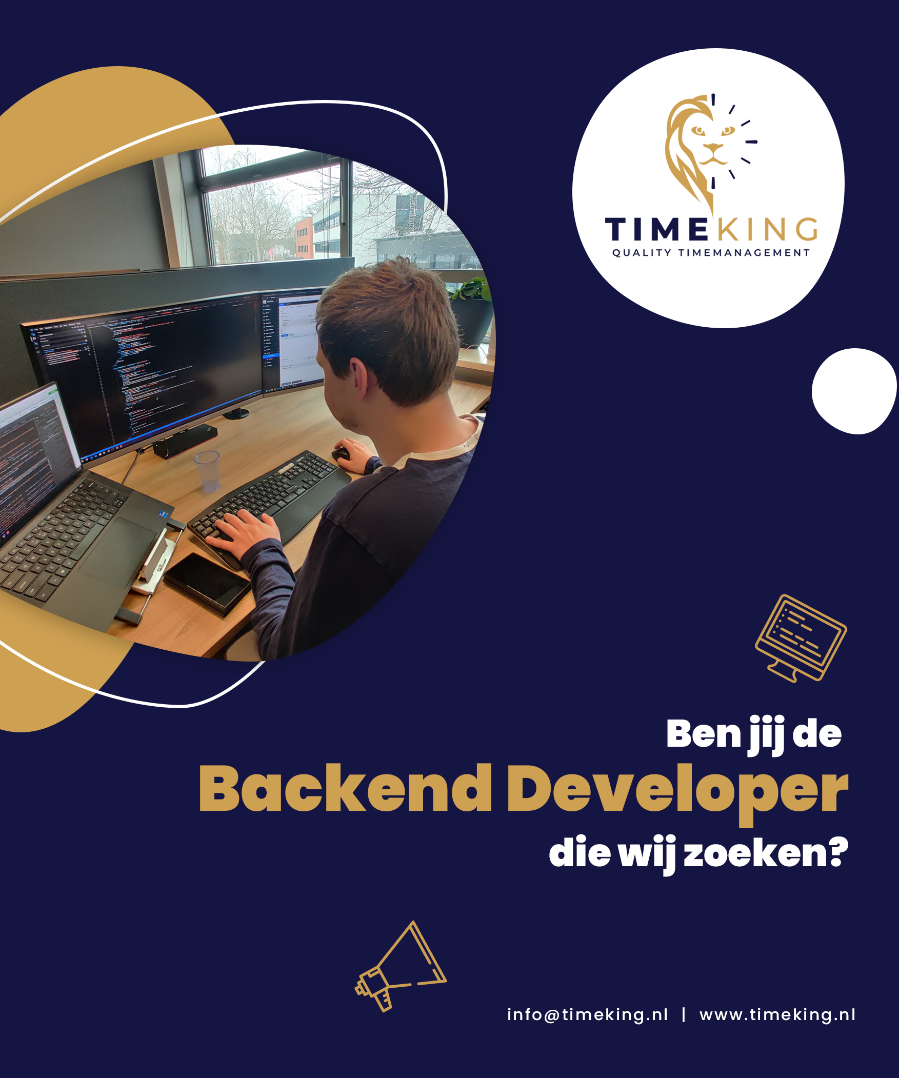 Wij zijn TimeKing: een jong, nuchter en innovatief bedrijf met een hands-on mentaliteit. Wat ons uniek maakt? Onze Twentse nuchterheid en no-nonsense aanpak. We zeggen wat we doen en doen wat we zeggen. Geen eindeloze meetings, maar directe lijnen en concrete oplossingen. We werken hard, maar houden ook van gezelligheid. Onze missie? Het ontwikkelen van gebruiksvriendelijke software voor planning en urenregistratie die bedrijven écht vooruit helpt. Onze klanten komen uit diverse sectoren met een buitendienst, met een sterke focus op groen- grond en infrastructuur. Met ons interactieve planbord wordt plannen een fluitje van een cent. Daarnaast bieden we krachtige modules voor o.a. personeelszaken, verkoop/verhuur, werkplaatsbeheer en projectadministratie. Ons klantenbestand groeit razendsnel. Daarom zoeken we versterking in de vorm van een enthousiaste back-end developer!